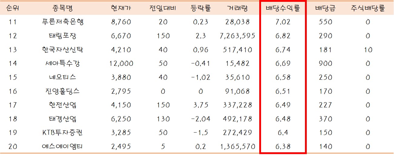 As of December 2022, the ranking of domestic stocks that pay more dividends is as shown in the table below.* KOSPI*
