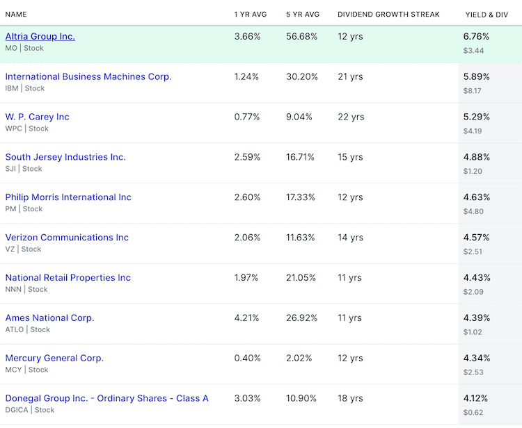 What are the top dividend stocks among domestic stocks?