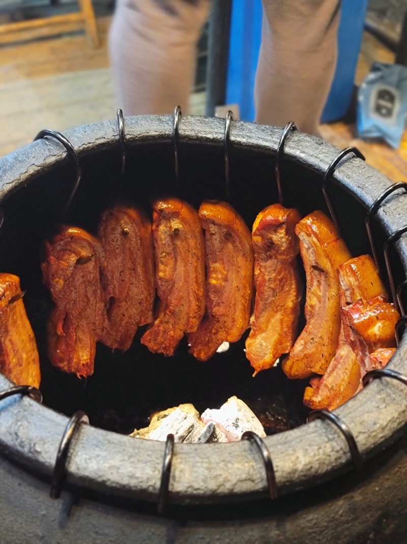산골항아리바베큐 고기집 이 장면을 우연히 보게 되었는데 삼겹살은 이렇게 항아리안에서 정말 오랫동안 구워져 나오는 거예요 그래서 이름을 지어서 산골바베큐 고기요리 맛집이에요 너무 신기했어요!!! 맛도 독특하고 좋았어요.